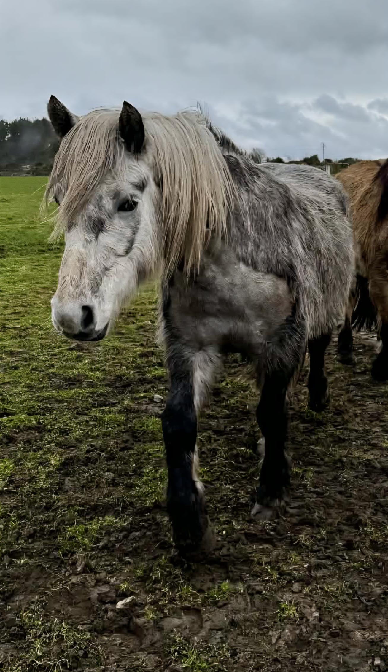 Born September 2022. Will fully grey out eventually and estimated to reach 13.3/14hh. Currently bum high. Will be a substantial pony once mature.